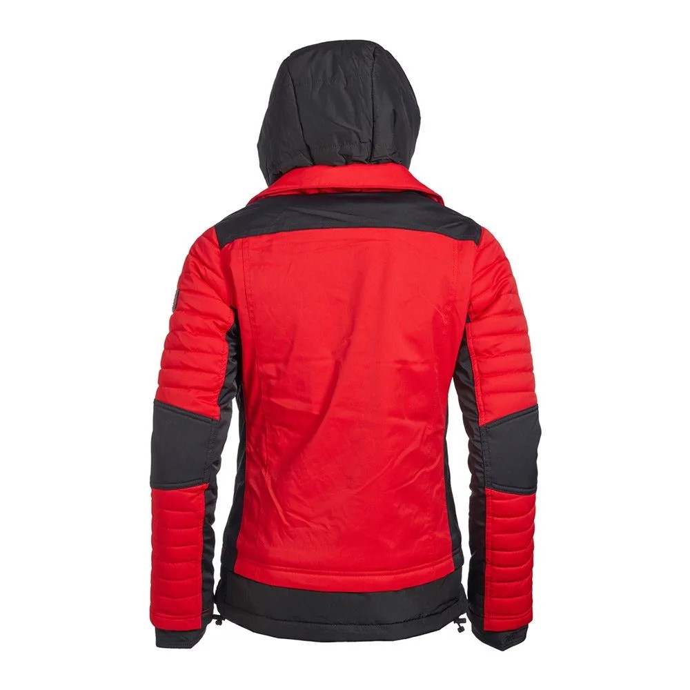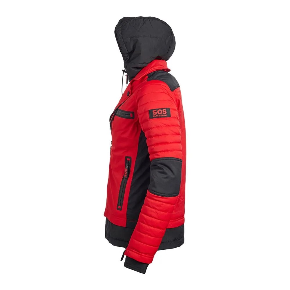 SOS 퍼포먼스 자켓. 모터 바이크 자켓에서 영감을 얻은 핏한 여성 스키/보드 자켓입니다.